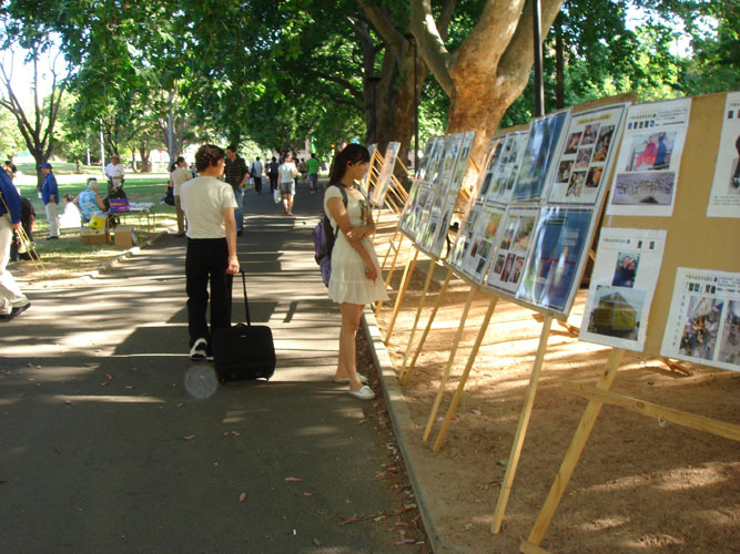 当天活动主办者还在集会的贝尔默公园里,以横幅、展板、资料及现场广播等方式,向路人讲中共的罪恶及正在发生的退!党!大潮。特别是揭露中共活体摘取法轮功学员器官的真相图片展,令许多路人纷纷围观并了解真相。不少路人在呼吁信上签名表示谴责中共这种惨无人道的兽行,要求对中共暴行进行独立调查。