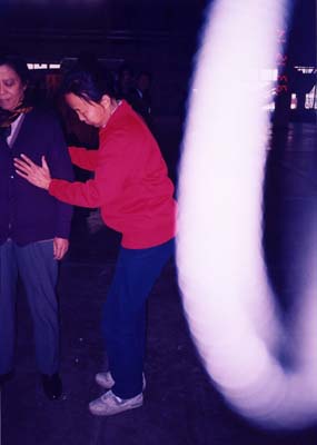 ![]() 法轮串——一九九三年北京东方健康博览会期间所拍到的景象。 |