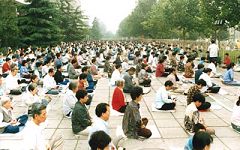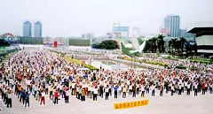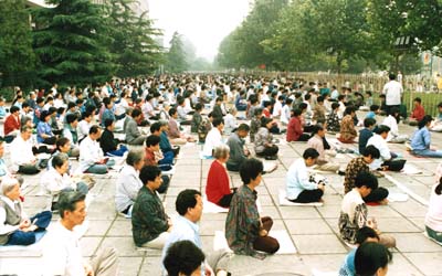 ![]() 北京法轮功学员一次大炼功场景,约二千人参加。(一九九八年) |