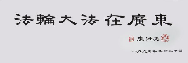 ![]() 法轮功创始人李洪志先生一九九九年给广州法轮功学员的题词。 |