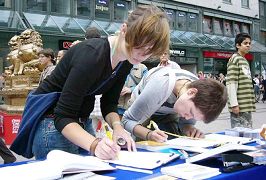 ![]() 人们纷纷签名,谴责中共活摘法轮功学员器官 |