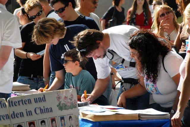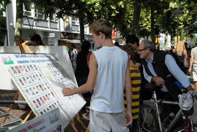 “信息展”位于斯图加特的主要购物街道,能看到和了解真相的行人络绎不绝。法轮功学员们普遍感觉到这些行人比以往花费了更多的时间在信息展了解真相。各个社会阶层以及各个年龄段的人们都来提出他们的疑问,了解真相以及签名支援反迫害。大多数人们表示了他们对迫害的震惊,纷纷询问如何能帮助改变这一局面。