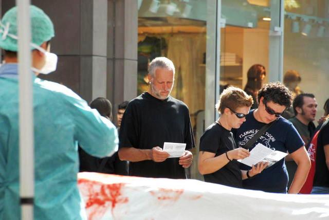 “真相信息展”共分三个主题内容:第一个主题是法轮功的功法展示,让人们了解什么是法轮功。第二个是模拟演示酷刑,揭露中共对法轮功修炼者的残酷迫害。第三个是模拟演示正在中国发生的中共活体盗取法轮功学员器官的罪行。一些行人十分详细的询问了真相并想要了解更具体的证据。他们索取了加拿大独立调查团关于中共活摘器官的调查报告,表示要回家好好研究一下。