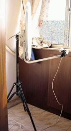 10、 测一下天线支杆和阳台墙面的距离,用钢管焊一个L形支架固定在墙面上(高度与移动支架一样)代替移动支架,把天线安装到支架上,重复上述3、4、5、6调试步骤即可。当然如果阳台较宽敞,用移动支架日常生活也不会碰撞,直接用移动支架也可。