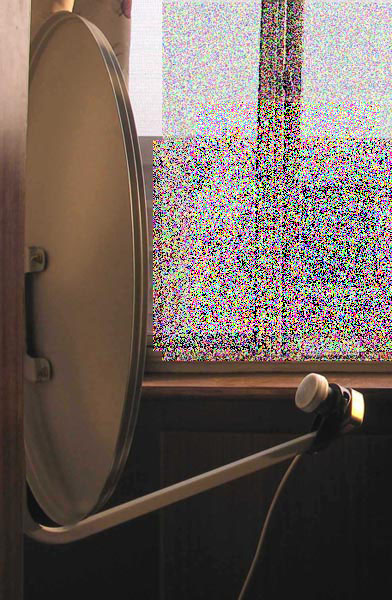 我们考虑可能是阳台窗上横梁阻挡信号,90cmKU天线虽然大却不能发挥作用。