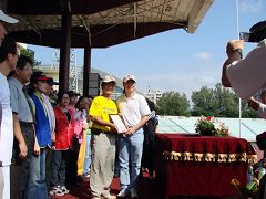 ![]() 运动大会颁发感谢状予参加的团体──法轮大法学会接受颁奖 |