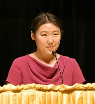 而今年十五岁的尚静茹谈了她在天国乐团的修炼体会。她的作业很多,但都会保障学法的时间。虽然很忙,但成绩很好。在乐团,她选择了一个较难的乐器——短笛。并且学会后还要再教其他学员吹。尽管是第一次吹,而且要快速掌握吹短笛的技巧,这很难做到。但她想:我是大法弟子,这些关是我要过的。终于在两个半天里,她学会了两首曲子,“法轮大法好”和“美丽的美利坚”。她悟到,只要坚持,并能把自己作为大法弟子,就一定会成功。