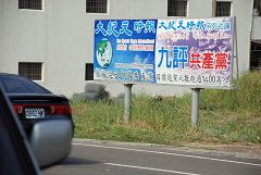 ![]() 在阿里山公路起点竖立的退!党!看板 |