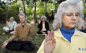 这个团体还有集体学法,学习法轮功的基本原则---真、善、忍。鲁妮说:“法轮功教导我们,先他后我,无私无我;打不还手,骂不还口;不求名利,放弃私欲等等。”