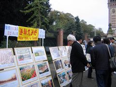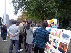 二零零六年十月二十二日早上十点钟后,陆陆续续来了旅游大巴,有个从西班牙来的基督徒的老人,看到图片后说:“我在西班牙也看到过有关你们法轮功的资料,我真的从内心里希望迫害尽早停止,上帝会保佑你们。”
