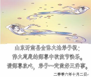 值此中秋佳节之际,我们山东菏泽全体大法弟子向您表示最亲切的问候,并致以最崇高的敬意!祝愿师尊节日快乐!