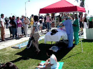 此间,许多来自世界各地的游客被活摘器官的模拟演示所震惊,接过传单,和学员们交谈,明白了真相;一些游客纷纷用手里的相机或者拍照手机拍下模拟演示,作为他们在Santa Monica海滩旅游的一个具有特殊意义的纪念;还有一些媒体的记者前来采访并进行了报道。