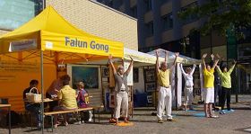 星期五,来了个我们在其它活动中已相识的妇女。她希望能得到有关这场迫害的更进一步的消息,还说她很愿意学法轮功。这位妇女在三天活动中每天都来。在第二天的晚上她有点困惑的对我说:“您知道吗?我几乎都快到家了,但我想,不,我一定要再去一次那个地方,再来见您,于是我又到这里来了。”第三天晚上我们几乎快拆展位时,她突然又出现了。她坐下来告诉我,她在这里感觉非常惬意,这里所有的一切都非常和谐,没有盛气凌人的感觉。这里的人也很友好,彬彬有礼,是她从来没碰到过的。显而易见,她与大法很有缘份,这使她感受到了大法的美好并不愿再离开他。她一直呆到我们快收拾完东西了才离去,并表示她要尽可能快的来学功。