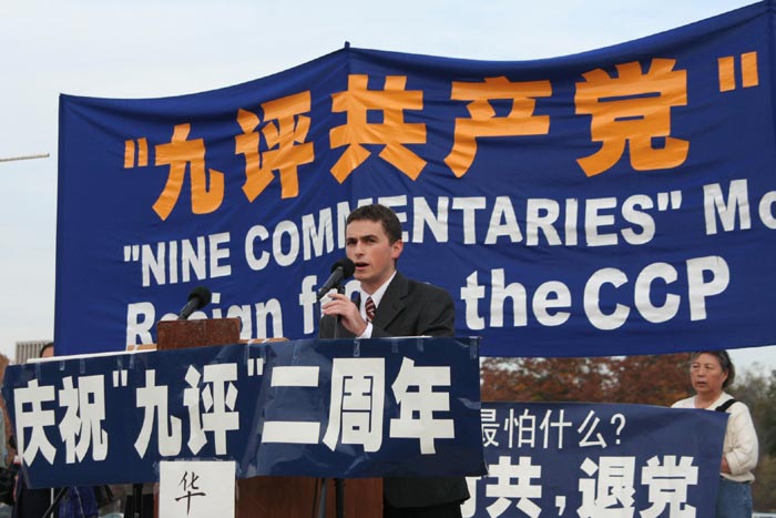 毕业于上海复旦大学的严先生在集会上说,“看了《·九·评*》以后,觉的写的很完整,很确切,我的感触很深,看了好几遍。大.纪.元;时报这次能够把中共的面目以《·九·评*》的方式揭露出来,的确很鼓舞人心,尤其是中国人民,很多中国人是敢怒不敢言,现在大.纪.元;把它(中共)的真面目揭露出来了,中国的真实现状也暴露了出来,这样才能使受蒙蔽的民众觉醒。”