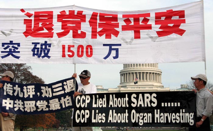 十一日下午,秋高气爽,参加集会的民众聚集在美国国会大厦前的倒影池前,展示出“广传·九·评*”、“退!党!保平安”、“退!党!服务中心”等横幅标语,络绎不绝的中国游客纷纷拍照留念,据一位来自中国大陆教师旅行团的游客说,国内很多老百姓在互联网上都看到了《·九·评*》和退!党!的消息。