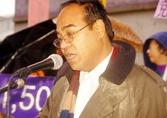 十位各界代表先后在集会上发言。曾被中共非法关押三年的法轮功学员李祥春表示:用尽人类的语言也无法确切的描述共产党的邪恶和残暴。只有摆脱中共邪灵,中华民族才有和平、美好的未来。