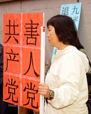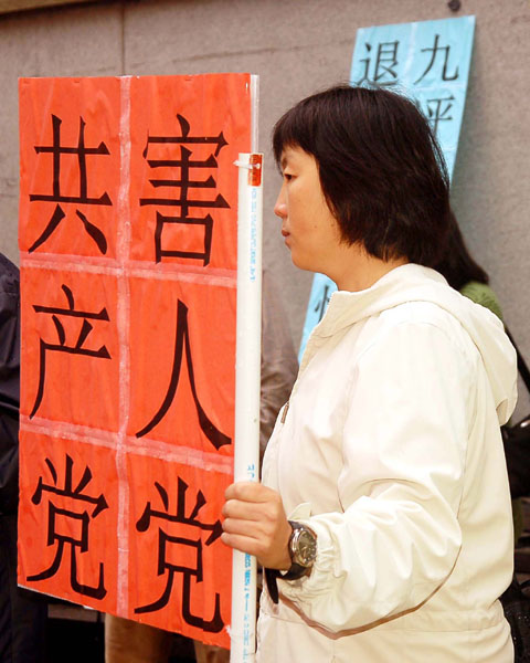 波士顿退!党!服务中心周女士带来了国内朋友传来的讯息:国内有成千上万的民众想退!党!,但找不到合适的途径。周女士本人就帮上海一家公司全体职员及二十多位家庭成员在大.纪.元;网站声明退出中共及其附属组织。周女士指出:退!党!之势不可挡,希望波士顿中国城的父老乡亲赶快退!党!保平安。