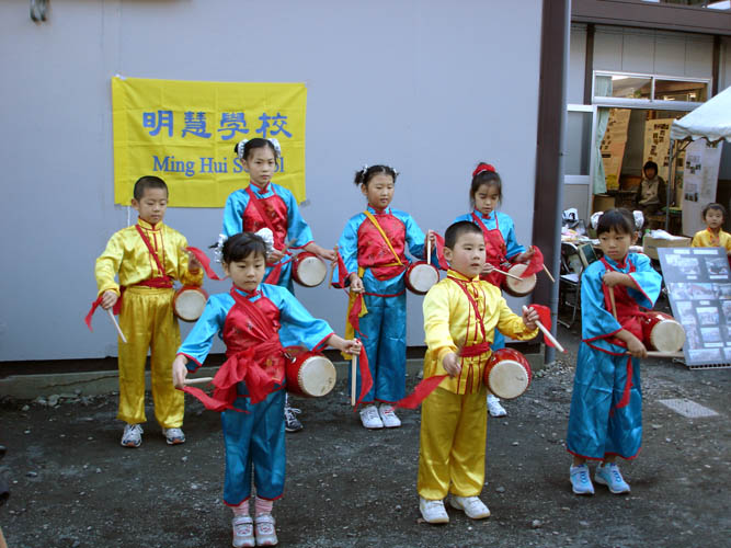 日本神奈川县明慧学校的孩子们以舞台表演的形式也参加了这次活动。他们向来客们表演了打腰鼓、舞蹈“泥人”、“插莲花”以及功法演示。孩子们为了这次舞台表演花费了两三个月的时间进行了精心准备。为了让他们的表演更上一层楼,使人们能通过观看节目感受到法轮大法的美好,老师们利用每个星期日明慧学校上课结束后的时间带着孩子们一遍又一遍的练习。十二日的活动中,孩子们天真无邪的表演博得了人们的阵阵掌声,最后孩子们向来客相约明年再相会。