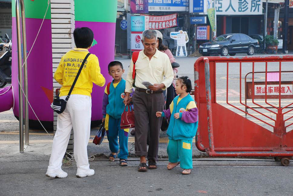 当天是嘉义县大林国小创校一百周年的校庆运动会,法轮功学员接受学校邀请,在运动会前表演功法。