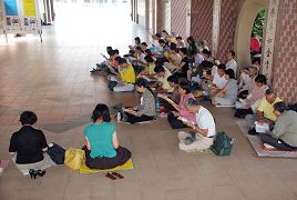 主办者为年纪较大、不懂国语的学员安排了台语班,大家专注的用台语一个字一个字的念着经文。学员里有许多是夫妻一起来学法的,主持人鼓励大家多向家人洪法,把修炼法轮功后身心受益的情况告诉亲朋好友。