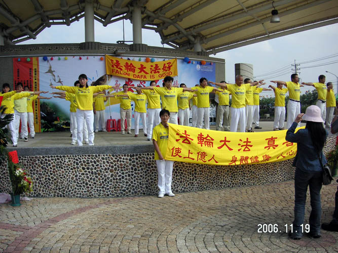 为让人们有机会了解法轮功,特安排中午人潮最多时,为乡民展示柔和优美的五套功法。
