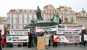 ![]() 游行前在布拉格市中心广场上集会谴责中共的人权迫害 |