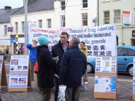 车旅从Newry郡开始,每到一处,法轮功学员都去会见当地的市议员和媒体,向他们介绍法轮功在中国所遭受的残酷迫害和中共的残暴本质。来自Newry市的一位议员亲笔给法轮功学员写了一封回信,他说他已经从电视上看到了中共对法轮功的迫害,并表示要在市议会上提请议员们对法轮功学员被中共盗售器官的关注。