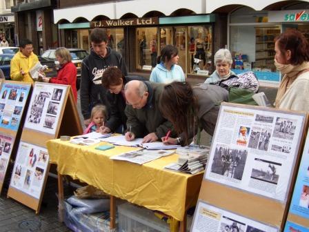 在Derry郡讲真相过程中,尽管下雨,但是当地民众一直在雨中排队等待签名呼吁反迫害,场面十分感人。