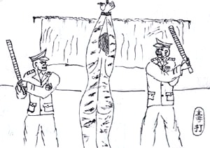 二零零三年,杨洪权再一次被延吉市国保大队绑架,国保大队恶人对他进行了残酷的酷刑迫害。其间对杨洪权施用过的酷刑有:毒打、用木板刮肋条骨、拽着头发将他抡圈儿,边抡边打、还用塑料袋套住头部窒息,看人快不行了就松开一会,然后再反复套……等等。恶警还威胁他不准出去乱讲(遭受的迫害手段),否则就整死他。