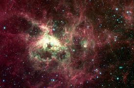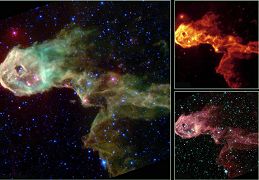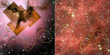 ![]() 图左是可见光成象,图右是美国宇航局Spitzer太空望远镜的红外光成象 |