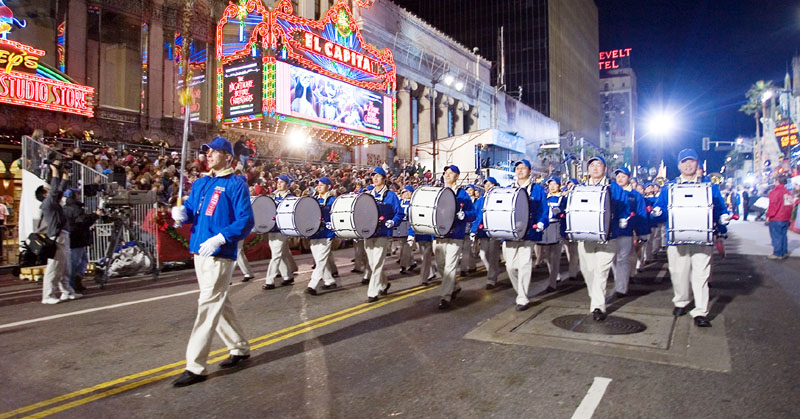 好莱坞圣诞游行始于一九二八年,是受到乡村歌手Gene Autry的经典歌曲「圣诞老人来了」的启发,原为吸引游客和消费者,而如今演变成了全美瞩目庆祝圣诞节的前奏盛事。