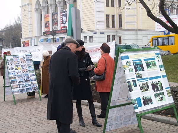 十一月二十五日是纪念一九三二年至一九三三年在乌克兰发生大饥荒的纪念日,悼念死于这场灾难的成千上万的乌克兰同胞,让人民永远都不要忘记这一恐怖的历史事件。大饥荒实属苏联共产党对乌克兰人民犯下的群体灭绝罪,而且这一灾难的悲剧延续至今,依然留有痕迹。法轮功学员向乌克兰人民讲述现在在中国,正发生着对法轮功学员的迫害,这是中国共产党对法轮功学员犯下的群体灭绝罪。