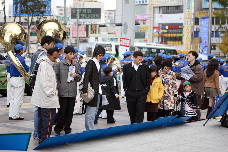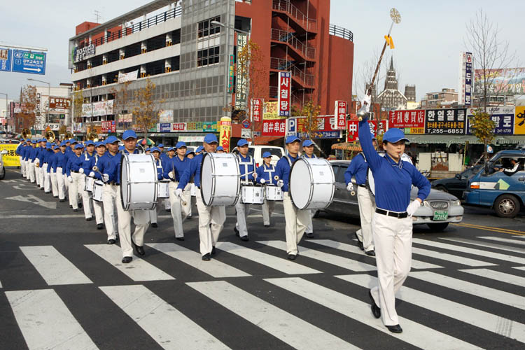游行开始,市民们纷纷停下脚步惊喜的欣赏天国乐团的演出。为使车流不影响游行队伍,警察们给予了积极的协助。当天国乐团经过一座天主教教堂时,来参加礼拜的信徒们为观看表演纷纷走了出来,挤满了教堂入口。
