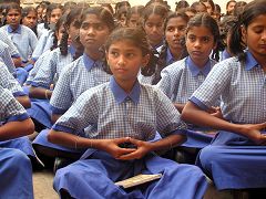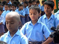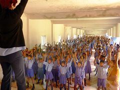 ![]() 与校长坐下交谈不到半小时,校长就组织了这所公立女子学校的全体一千两百名学生,让我们向她们教功。尽管人很多,天很热,但除了炼功的音乐和师父的口令声之外,听不到任何其它的声音。 |