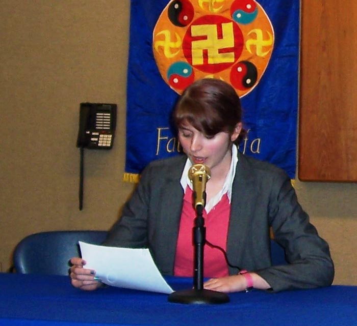 十六岁的高中生凯特琳,一年多前和妈妈一起得法。她在发言中,讲述了自己利用互联网向中国人传“·九·评*”的经历、劝退!党!的经历。在受到一些不明真相的中国人的恶语攻击后,她坚持讲真相,同时修去爱听好话的心。