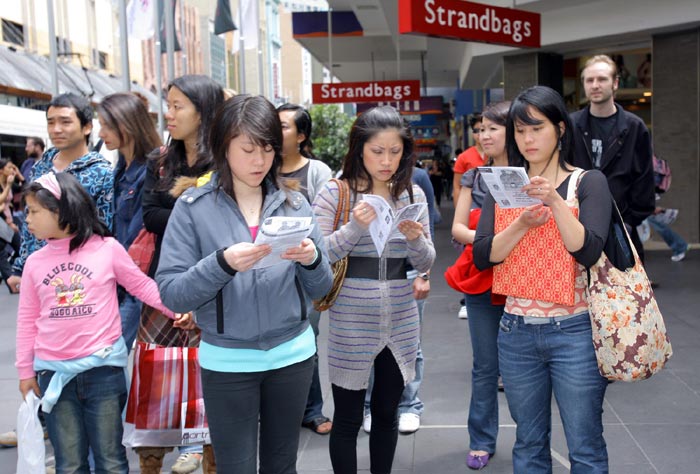 当天在退!党!游行集会之前,墨尔本市中心还举行了一项以环保为主题的游行,来自维省各地数千民众在参加环保游行的同时观看了天国乐队的表演,了解了中共迫害法轮功及一千五百万人退出中共的事实。