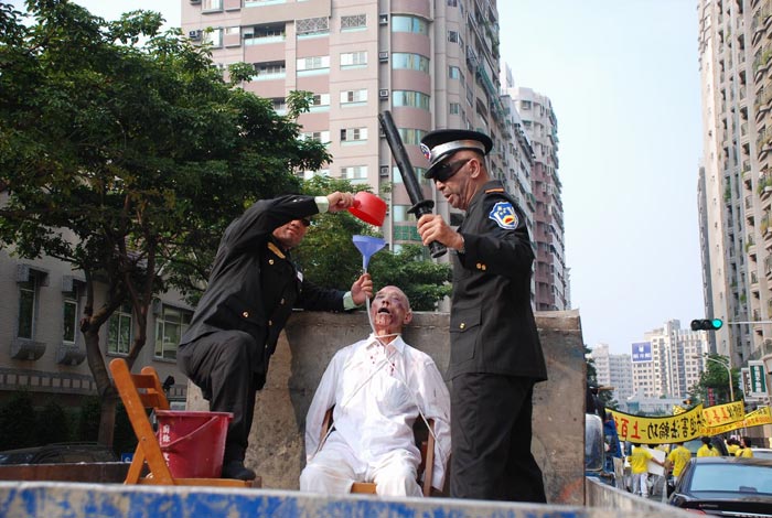 ![]() 真人模拟演示中共对法轮功学员的酷刑迫害 |