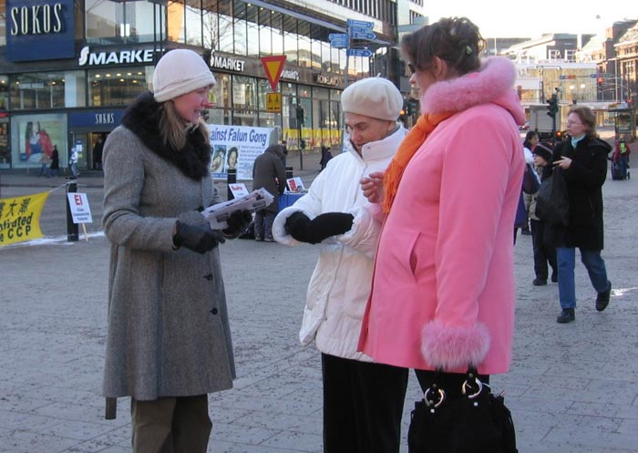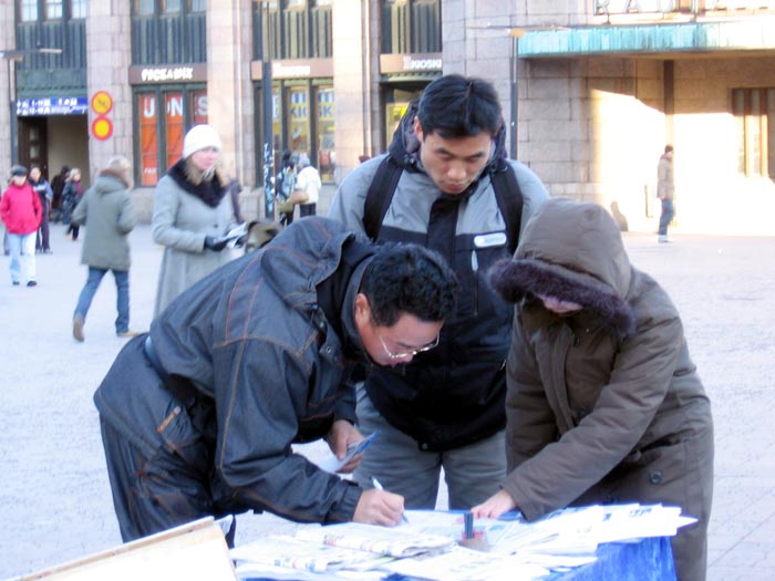 一位芬兰女士对义工说,她在芬兰看到许多中国人,她认为:是上帝让他们听你们讲真相来的。