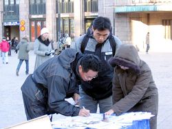 一位说英语的外国人听了中共灭绝人性的活摘法轮功学员器官的暴行后说,从未听到过,很震惊,不可想象这样的事会发生在今天。接着他签名声援反迫害。