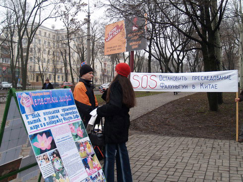 多涅茨当地一家很著名的报社Donbass记者对这次活动非常感兴趣,她采访了许多学员。采访中,她提到这样一个问题:“昨天,驻乌克兰中国大使来过多涅茨克,一名记者用此机会,向他提了法轮功学员将在多涅茨克举行活动,问他对此有何看法。中国大使说:‘每一个参加活动的法轮功学员一天可以赚取五十美金的报酬。’这是真的吗?”