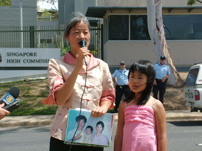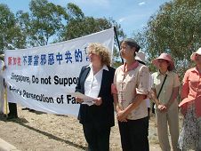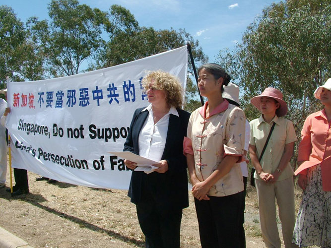 ![]() 法轮功学员在新加坡大使馆外面举行新闻发布会 |