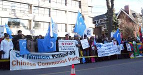 多伦多国际大赦代表麦克·克拉格主持了当天的抗议活动。维吾尔人权领袖热比娅·卡德尔、加拿大国会议员Peggy Nash、加拿大笔会David Cozac、民阵副主席盛雪等分别作了现场演讲。