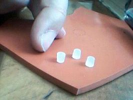 实心胶塞网络上有卖,用来密封惠普墨盒通气孔。一元十个。胶塞半透明,很软。