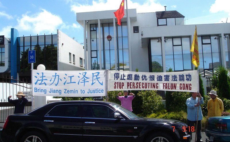 现在新西兰奥克兰中领馆门前证实大法的环境是越来越好!