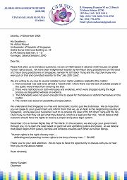 我们知道新加坡是一个象印度尼西亚一样的自由而民主的国家。我们真切希望您能转告您的政府,我们,一个新加坡邻国的非政府组织,鼓励新加坡高等法院重审黄才华、余文忠两人的案例。以便他们得到他们应该享有的真正公正的审判。我们相信每个人都应该拥有一个正当,公允的司法体制。