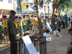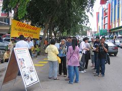 ![]() 许多民众被这中共酷刑迫害法轮功的演示所震惊,纷纷驻足观看 |