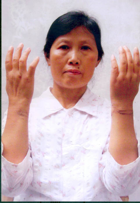 ![]() 王丽琼手腕被吊铐的伤痕 |