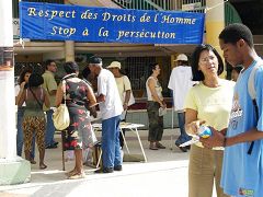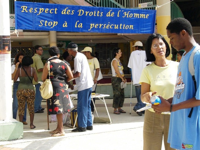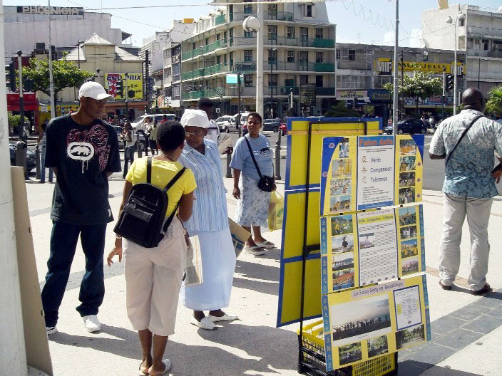 【明慧网二零零六年十二月二十七日】二零零六年十二月九日,瓜德鲁普的法轮功学员在皮特尔角(Pointe -à -Pitre)市中心组织了一次活动,揭露中共活体摘取法轮功学员器官牟利的罪行。听说这种非人的罪恶,人们十分震惊。一些人表示,在现代化的今天,怎么还存在着如此残暴的行为!一位女士对学员们说:“这些人怎么能在人身上做这样的事?我们要密切关注这件事。”