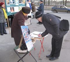 在场的很多俄罗斯人告诉法轮功学员,他们非常了解共产党的邪恶, 因为俄罗斯曾经深受其害。他们纷纷谴责中共迫害好人、践踏人权的罪行,并签名声援法轮功学员反迫害。
