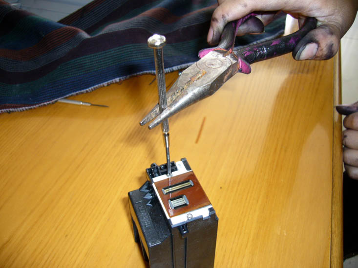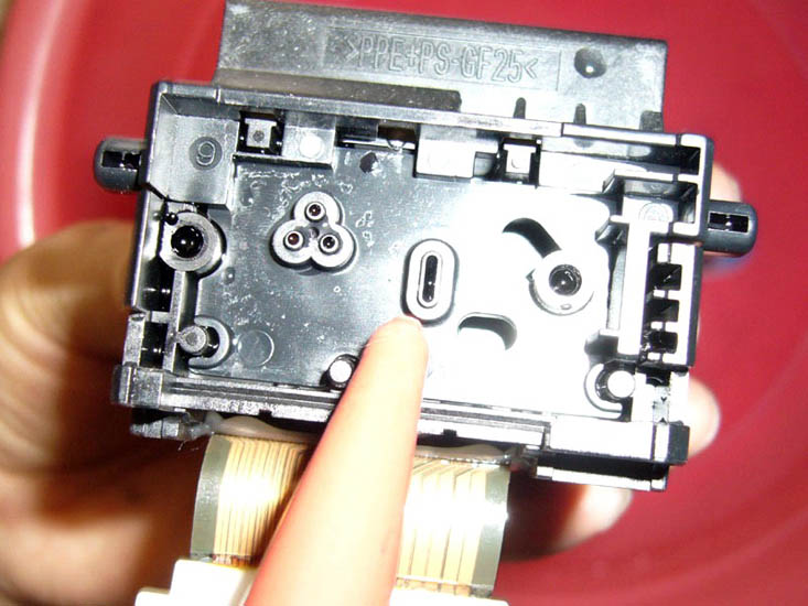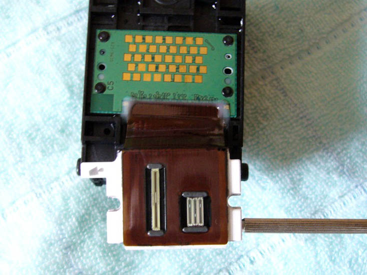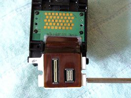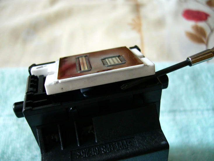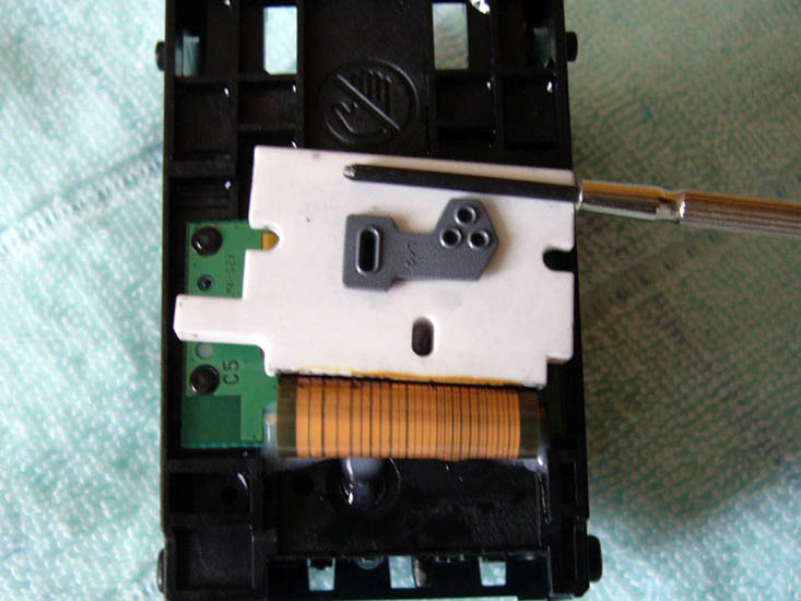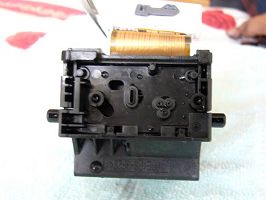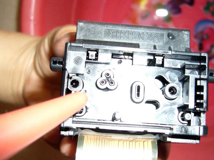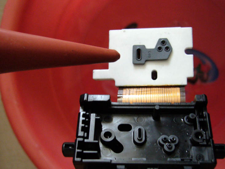 由于很多同修都在采用佳能IP系列打印机,并且改装成连供系统,遇到的最大问题就是喷头常常堵塞的,清通方法有多种比如:浸泡法、超声波振荡法、清洗液清洗法,但是往往不能彻底解决问题,过不了多久又堵了,也许是师父点化,这里提供一种方法,更好的解决喷头堵塞的清通问题。拧下两个螺丝,轻轻一撬,打开喷头后,用注射器吸上温水,注意一定是反向喷射到喷头处,直到清通(将喷头对着灯光,可以清晰看见灯光就是清通好了)